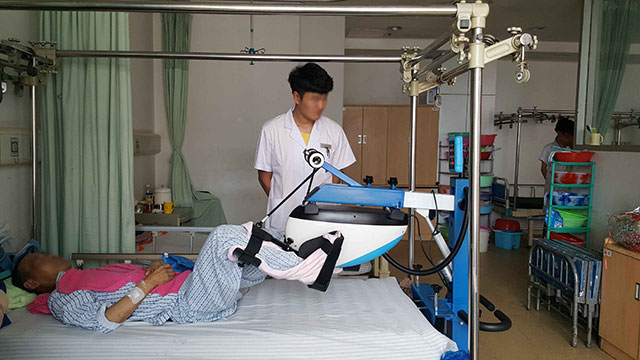 智能下肢康復器材:智能下肢康復訓練機, 具有患者從完全被動訓練階段到主動和被動訓練相交叉的助力訓練階段到完全的主動訓練階段到初期主動力量訓練階段的患者康復過程。